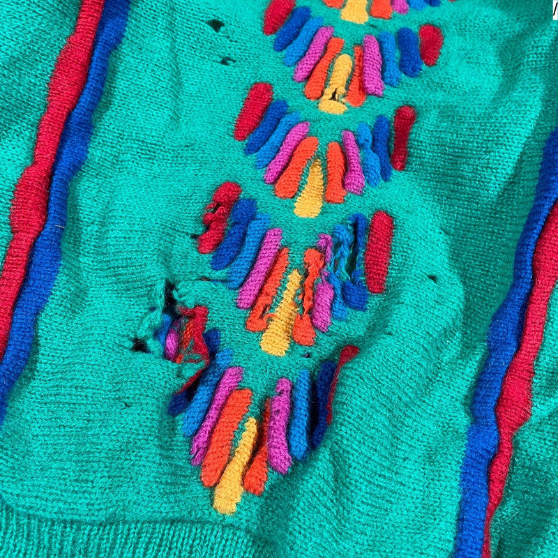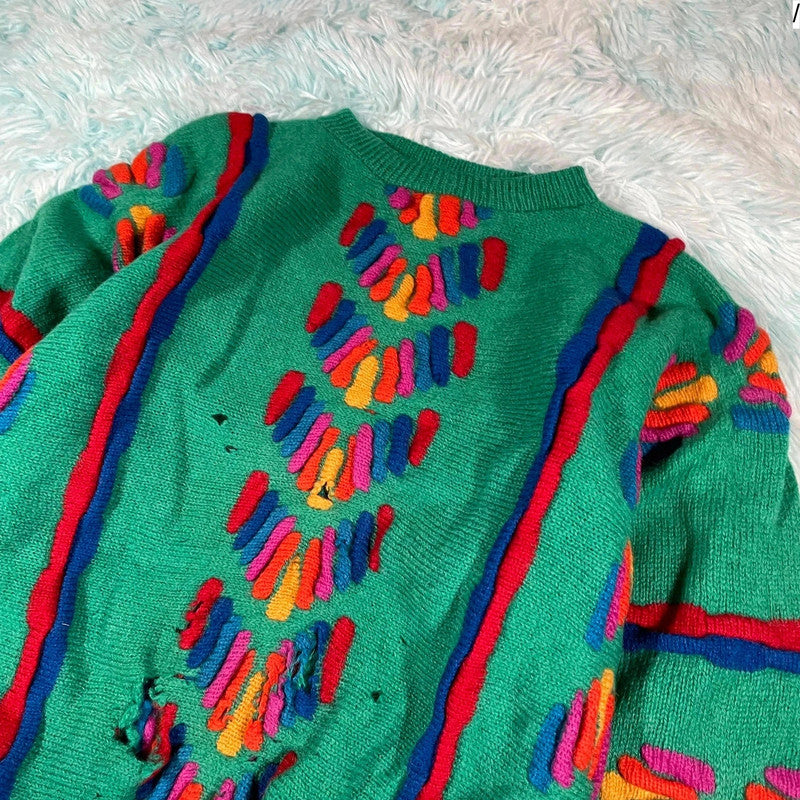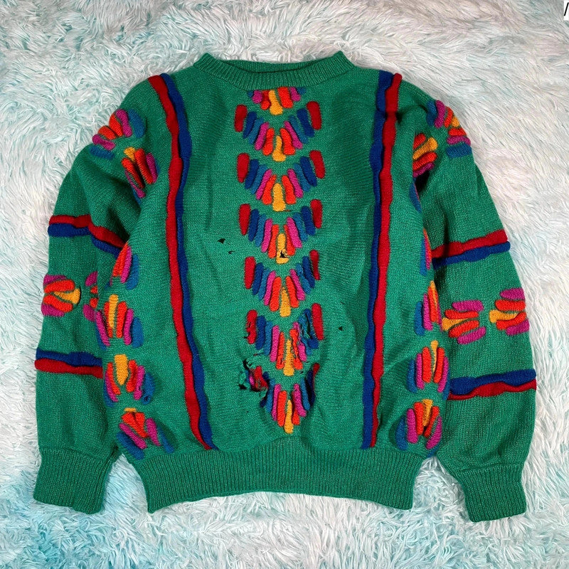 Vintage 90s Green Patterned Tulchan Knitted Jumper - Large