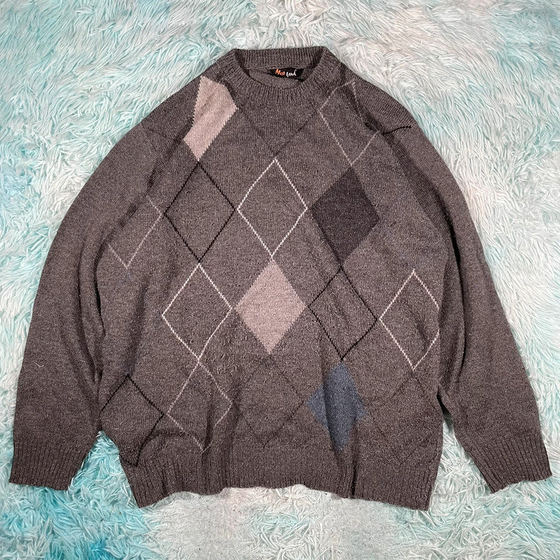 Vintage 90s Grey Grunge Patterned Knitted Jumper - XL, brand: NO LABEL, condition: Very good, size: XL
