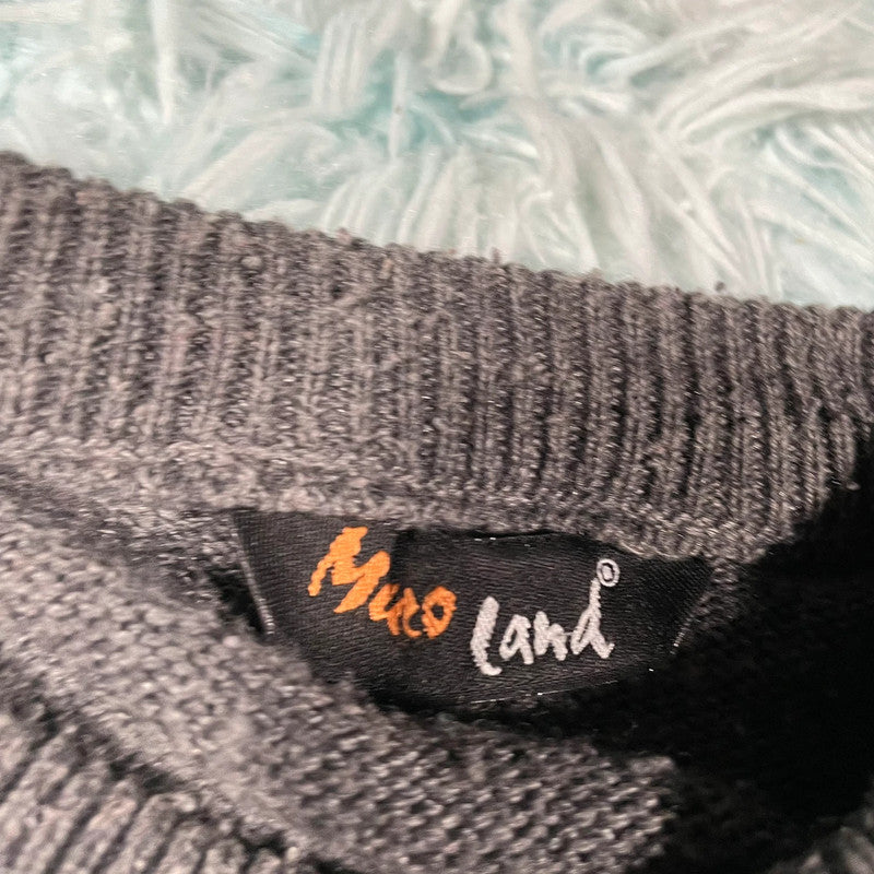 Vintage 90s Grey Grunge Patterned Knitted Jumper - XL
