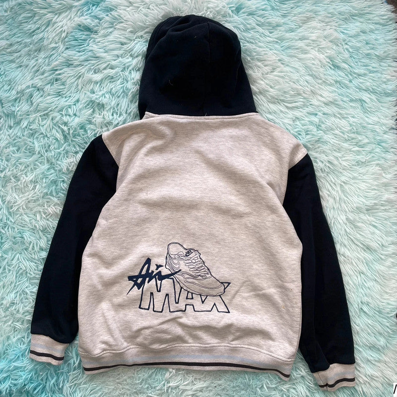 Vintage 90s Grey & Navy Nike Hoodie Full Zip - XS, brand: Nike, condition: Good, size: XS