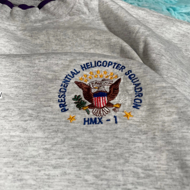 Vintage 90s Grey Presidential Helicopter Team Graphic T Shirt - Large, brand: NO LABEL, condition: Very good, size: L