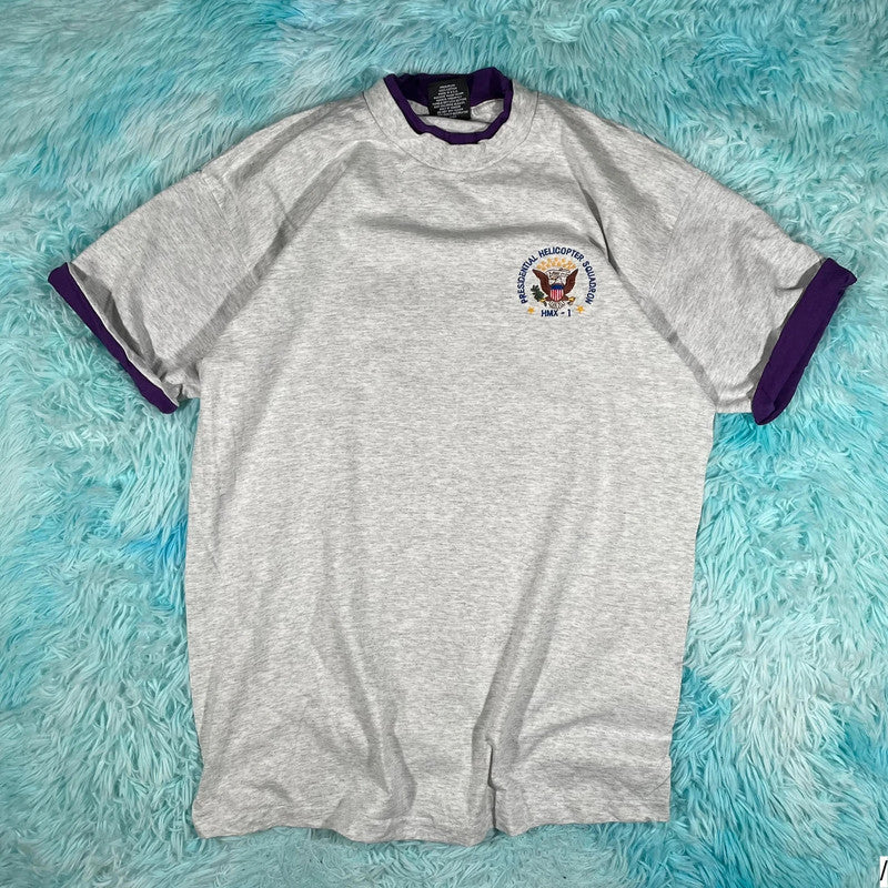 Vintage 90s Grey Presidential Helicopter Team Graphic T Shirt - Large, brand: NO LABEL, condition: Very good, size: L