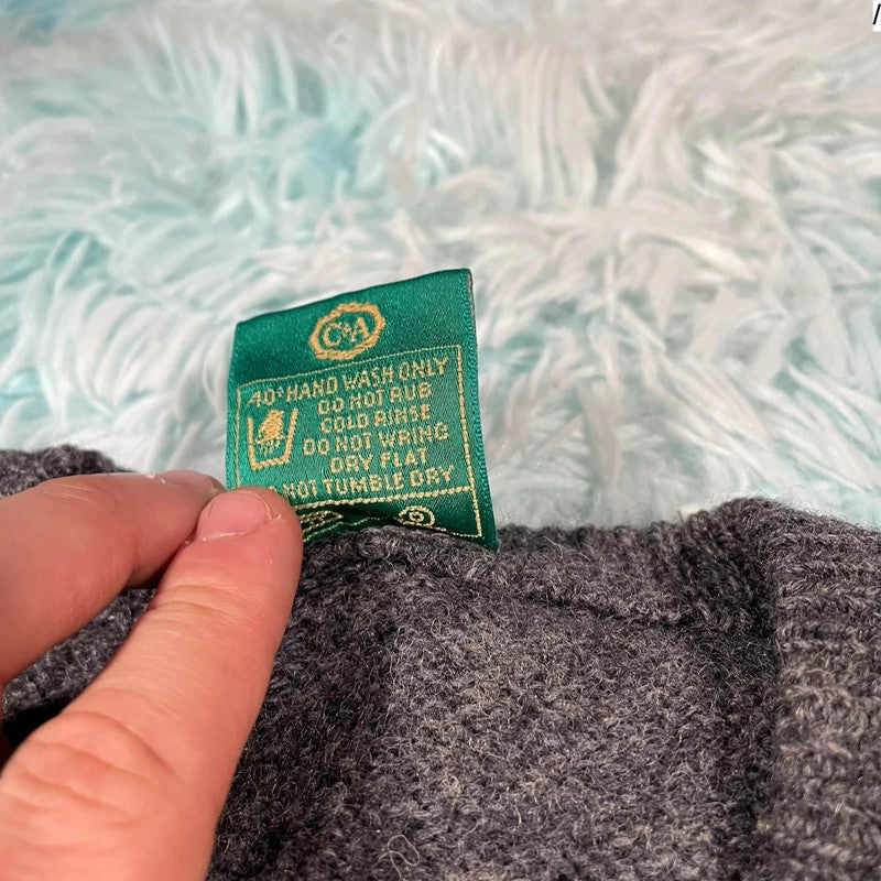 Vintage 90s Grey V Neck Wool Knitted Jumper - Medium, brand: Canda, condition: Very good, size: M