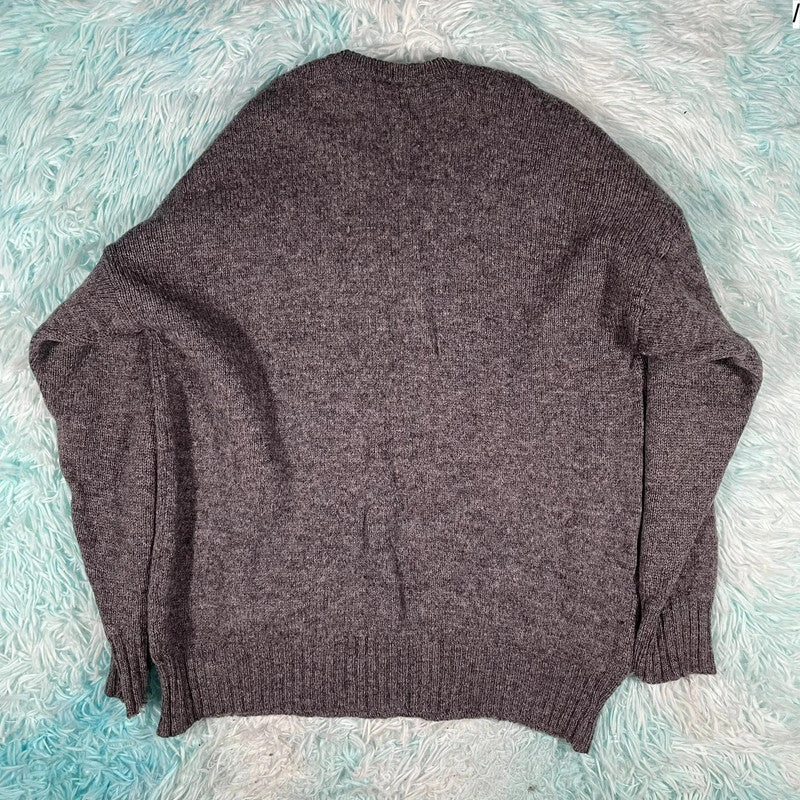 Vintage 90s Grey V Neck Wool Knitted Jumper - Medium