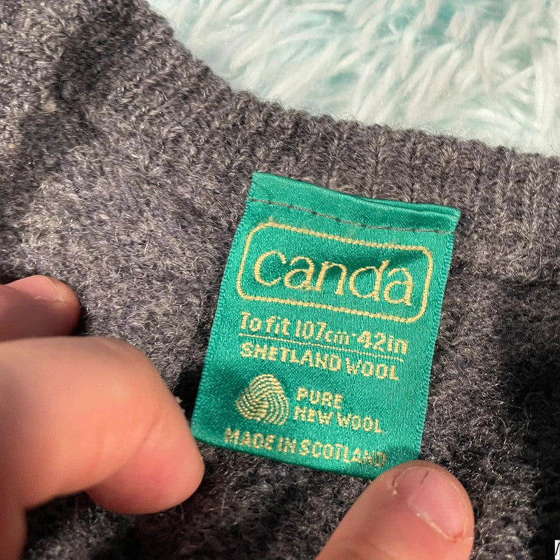 Vintage 90s Grey V Neck Wool Knitted Jumper - Medium, brand: Canda, condition: Very good, size: M