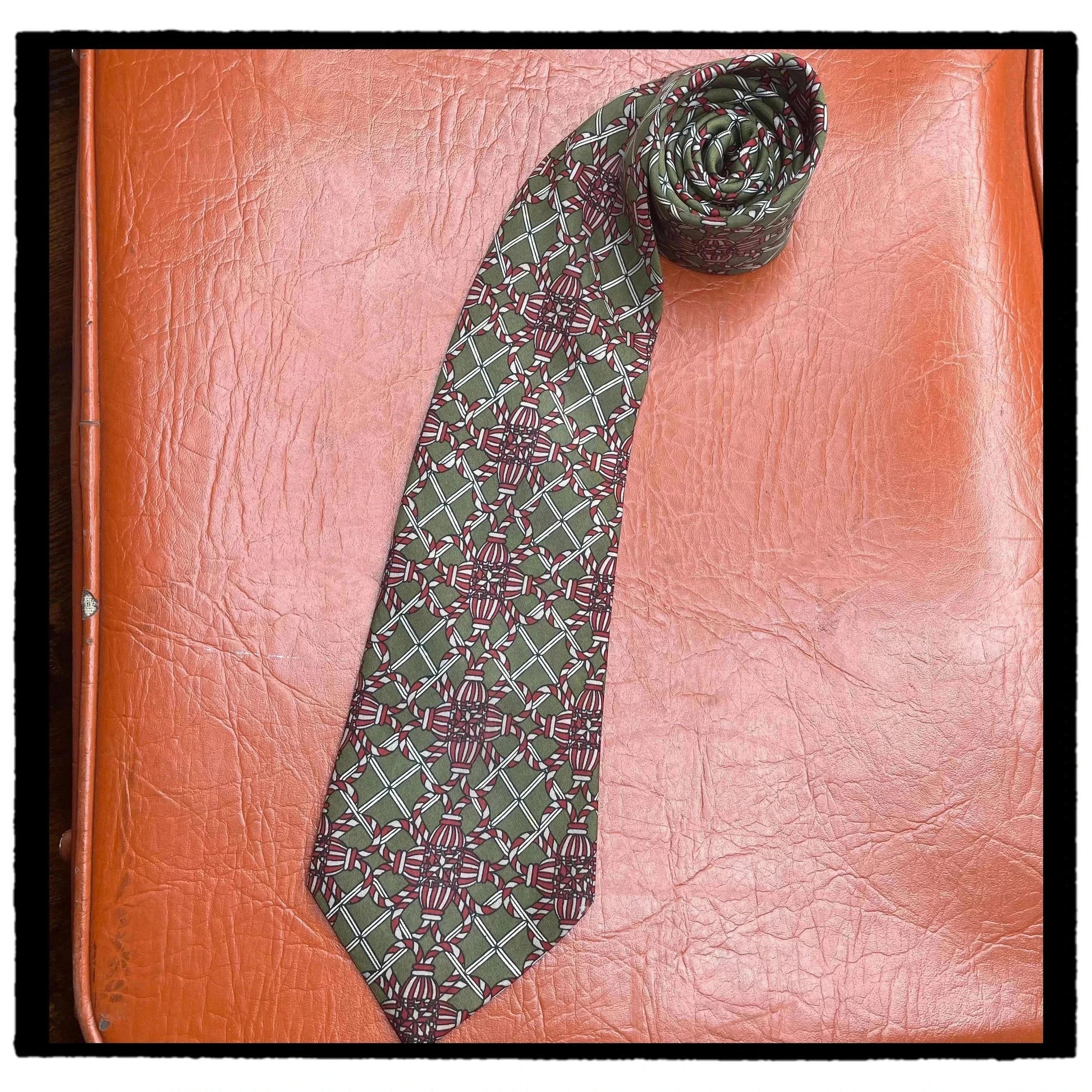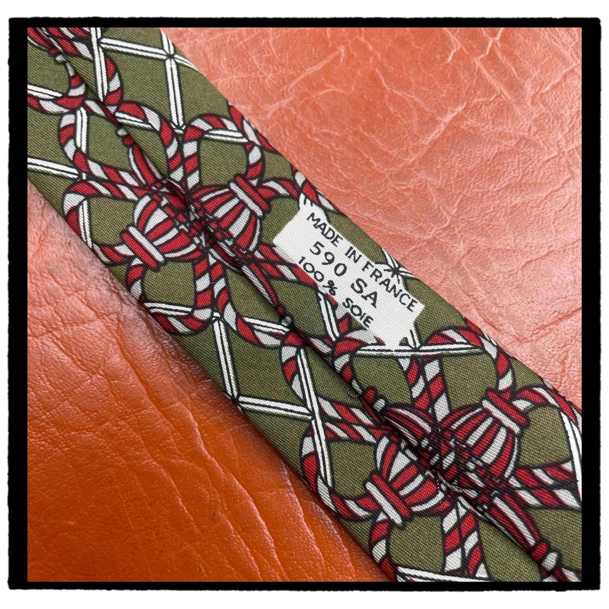 Vintage 90s Hermes Tie Patterned Green Made in France 100% Silk