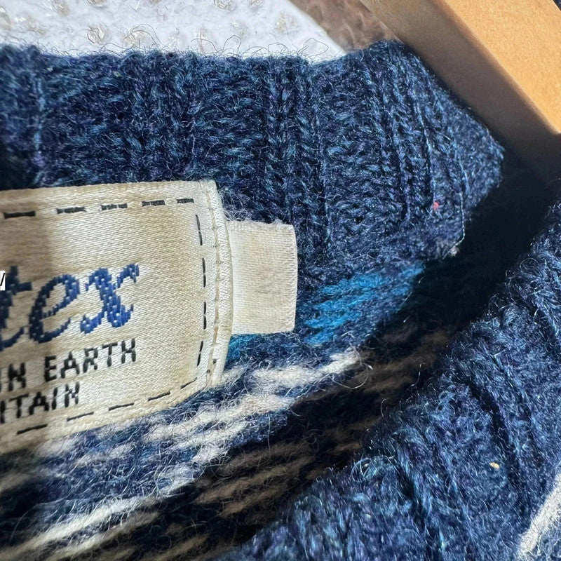 Vintage 90s Navy Nordic Patterned Knitted Jumper - Medium