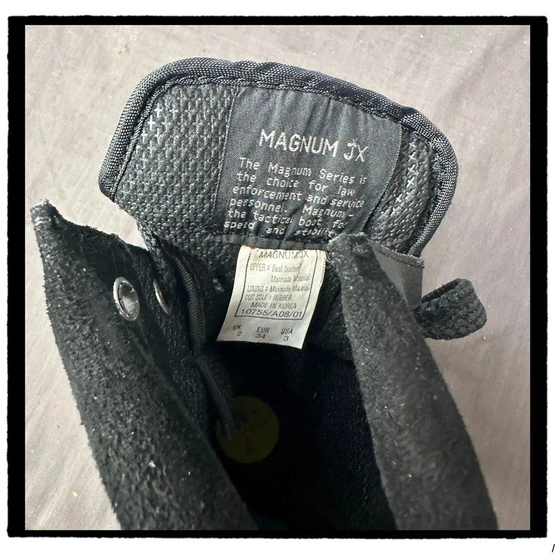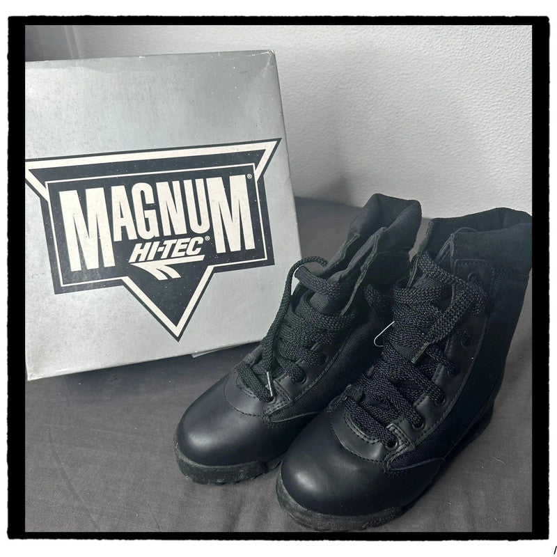 Vintage 90s Original Black Hi-Tec Magnum Workwear Boots Steelcap - UK2, brand: Hi-Tec, condition: New with tags, size: 4