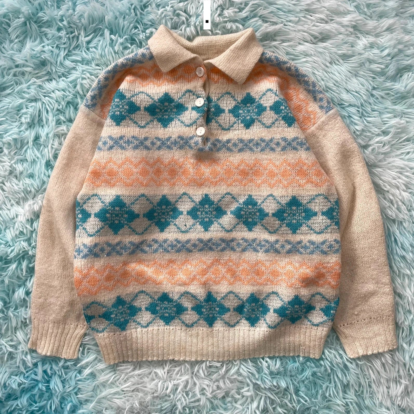 Vintage 90s Patterned Collared Grandma Jumper - Size 10