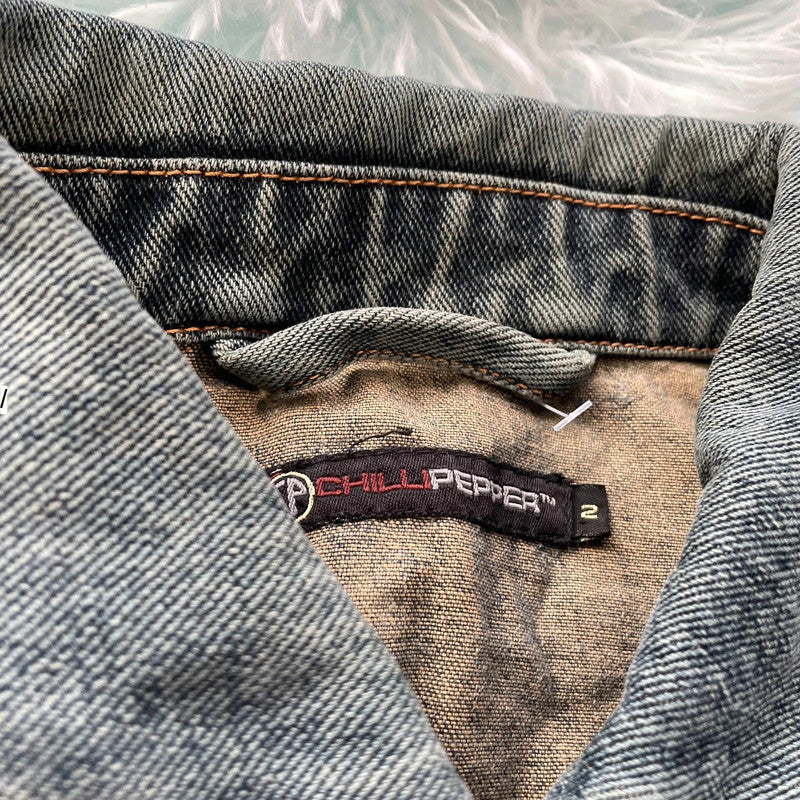 Vintage 90s Patterned Denim Trench Coat - Size 8, brand: Chilli Pepper, condition: Very good, size: 4 / S