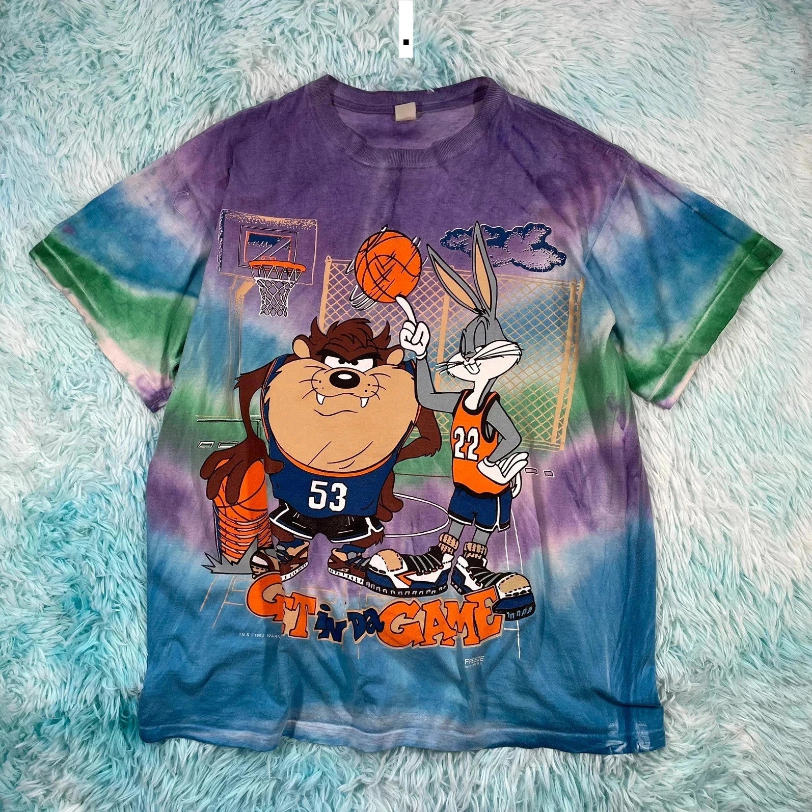 Vintage 90s Purple Looney Tunes Tie Dye Basketball Graphic T Shirt - XL