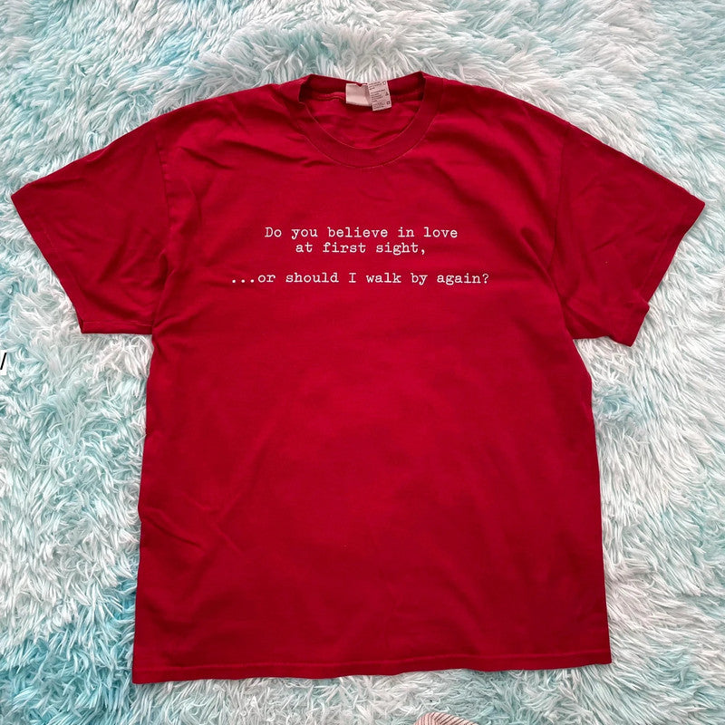 Vintage 90s Red Funny Slogan T Shirt - Large, brand: NO LABEL, condition: Very good, size: L