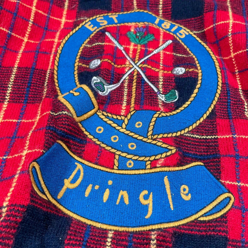 Vintage 90s Red Pringle Golf Tartan Jumper - M, brand: Pringle, condition: Good, size: M