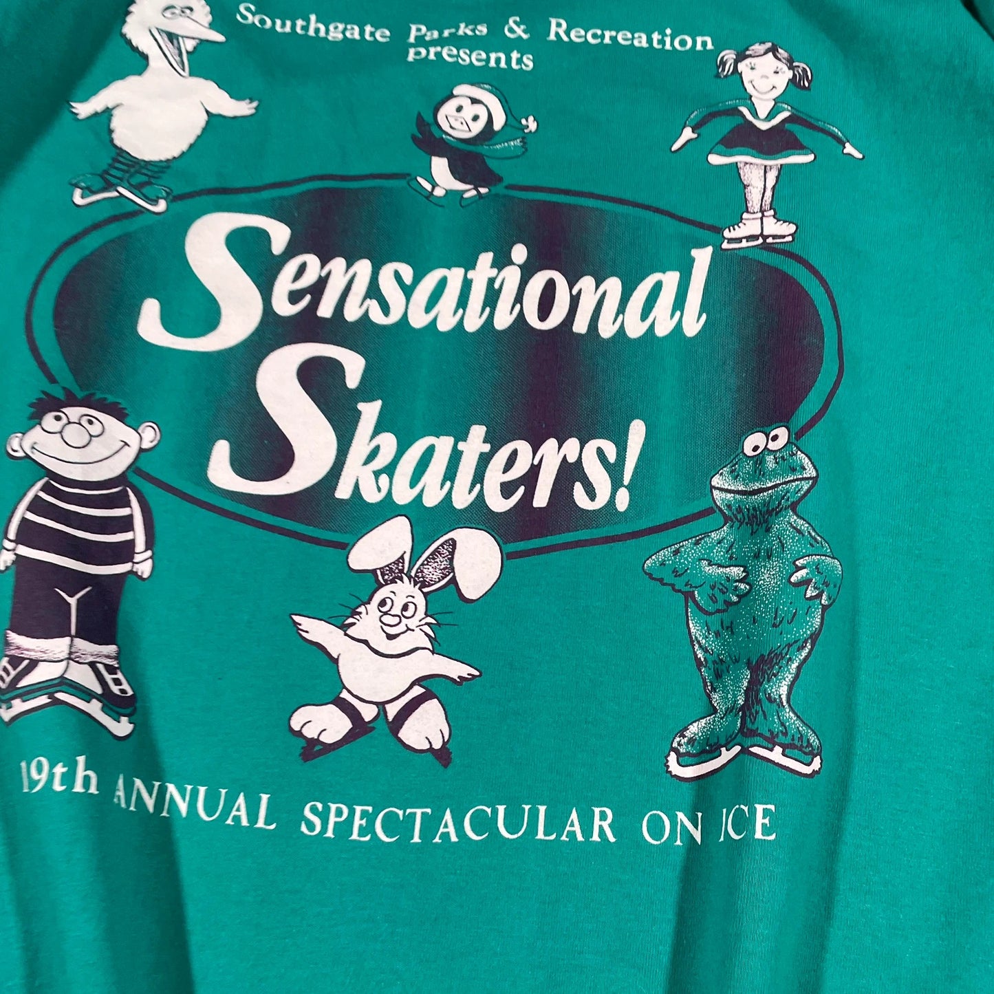 Vintage 90s Turquoise Ice Skating Graphic T Shirt - XL