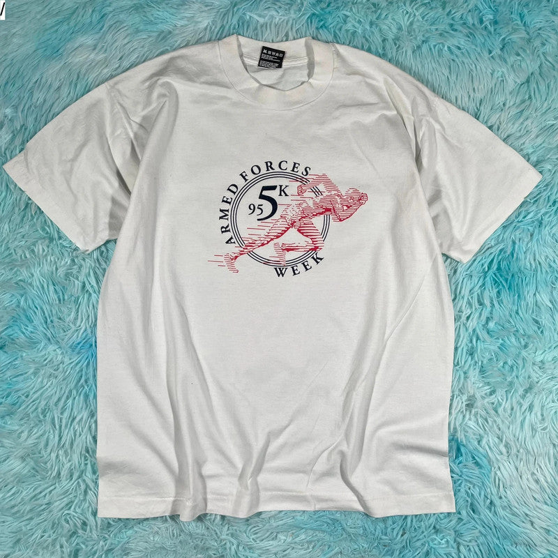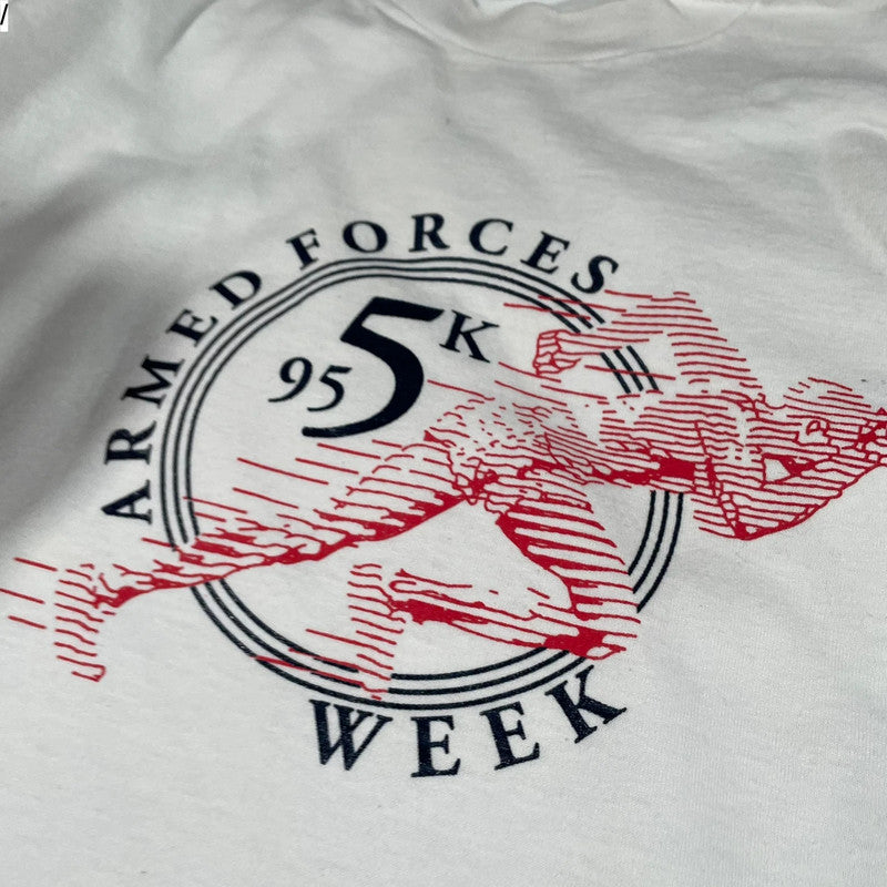 Vintage 90s White Armed Forces 5k Race Graphic T Shirt - Large