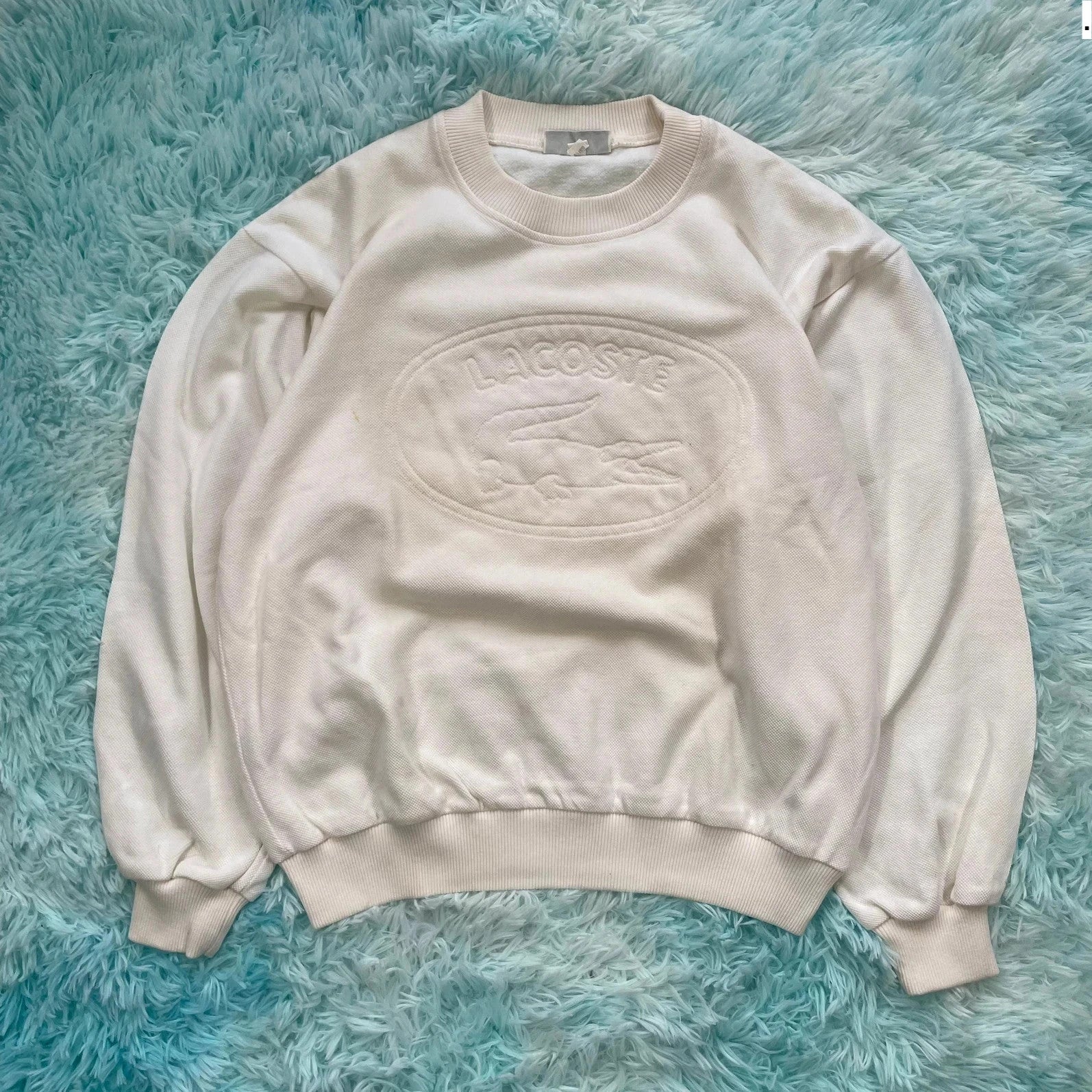 Vintage 90s White Chemise Lacoste Logo Sweatshirt - Small
