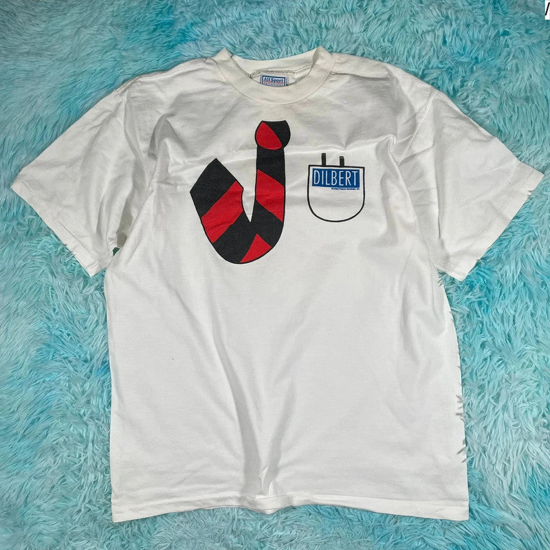 Vintage 90s White Dilbert Comic Graphic T Shirt - XL, brand: Allsport, condition: Very good, size: XL