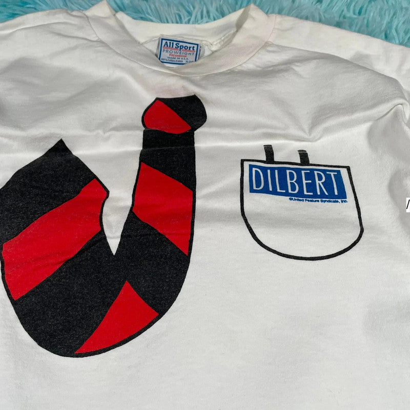 Vintage 90s White Dilbert Comic Graphic T Shirt - XL, brand: Allsport, condition: Very good, size: XL