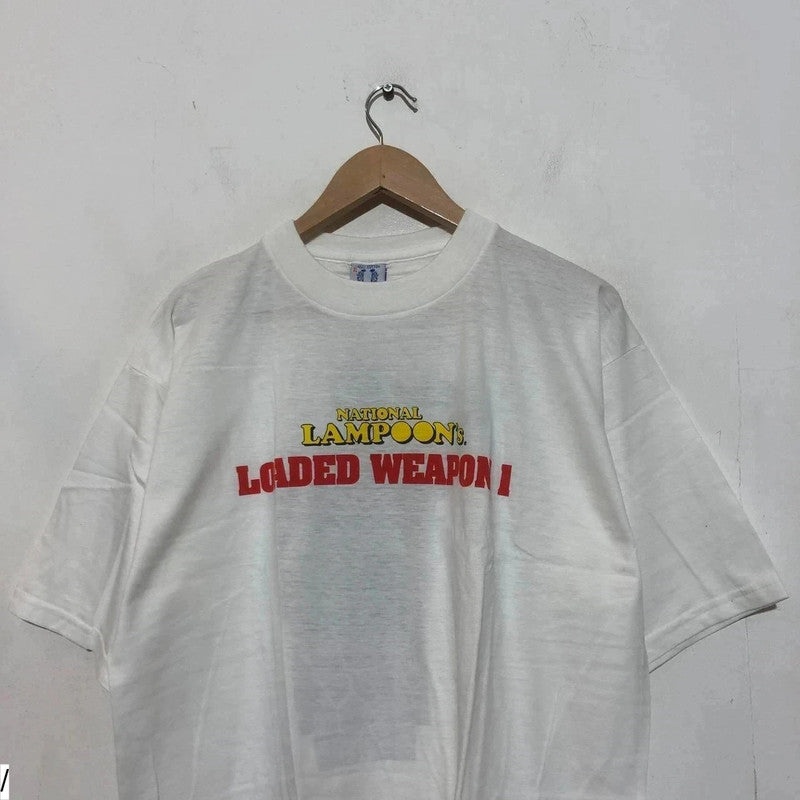 Vintage 90s White National Lampoon's Loaded Weapon Movie Promo T Shirt - XL, brand: other, condition: Very good, size: XL