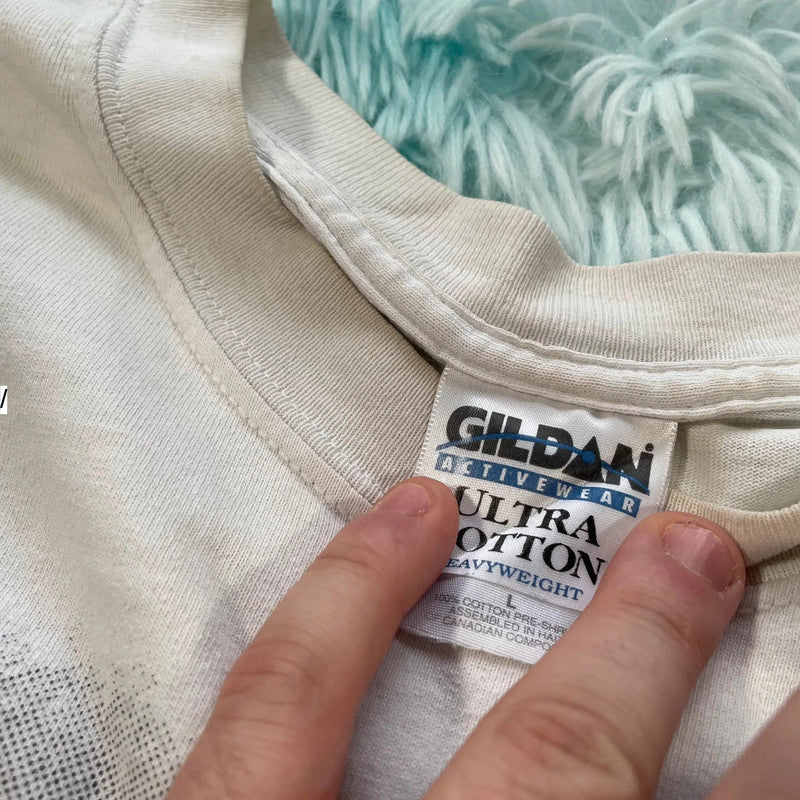 Vintage 90s White Skiing Graphic T Shirt - Large, brand: Gildan, condition: Good, size: L
