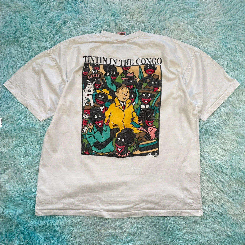 Vintage 90s White Tintin in the Congo Graphic T Shirt - XL, brand: TinTin, condition: Very good, size: XL