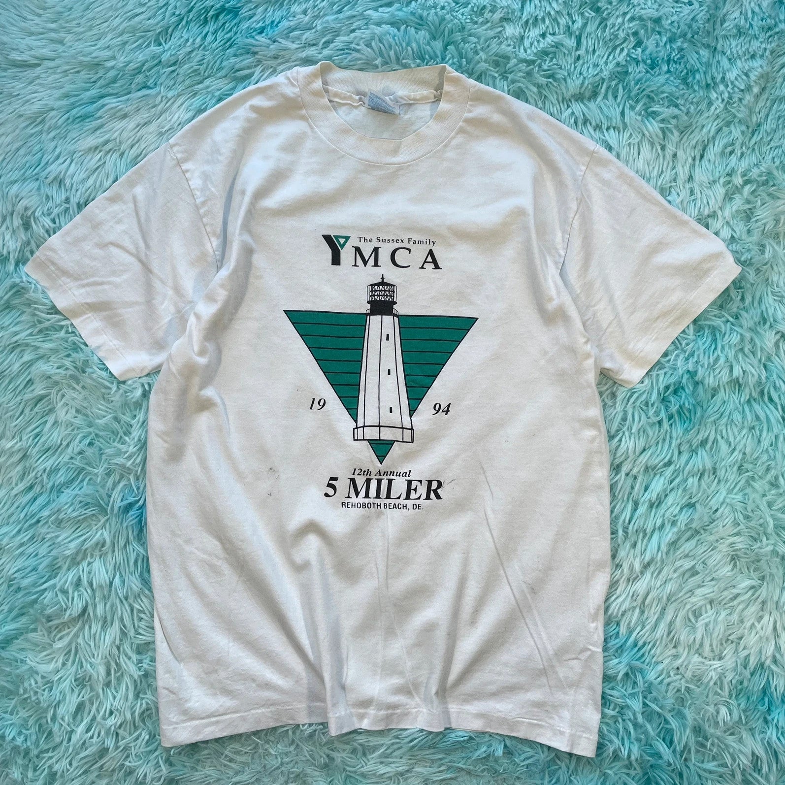 Vintage 90s White YMCA 5k Race Graphic T Shirt - Large