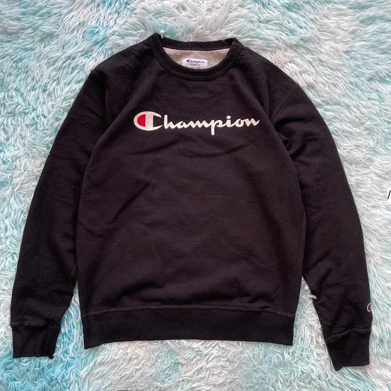 Vintage Black Champion Sweatshirt Spellout - Medium