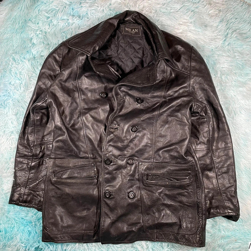 Vintage Black Milan Leather Jacket Button Up - Large