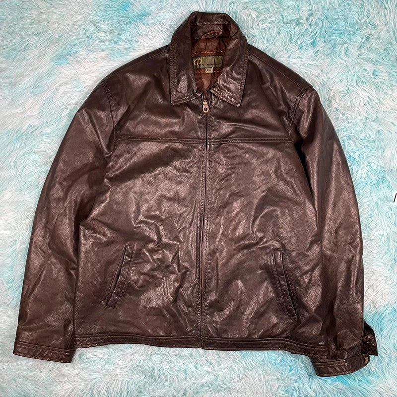 Vintage Brown Boxy Leather Jacket - XXL, brand: Real Leather, condition: Very good, size: XXL