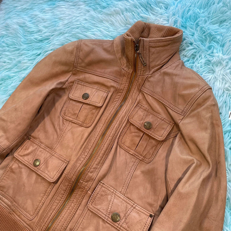 Vintage Brown Fitted Leather Jacket - Small