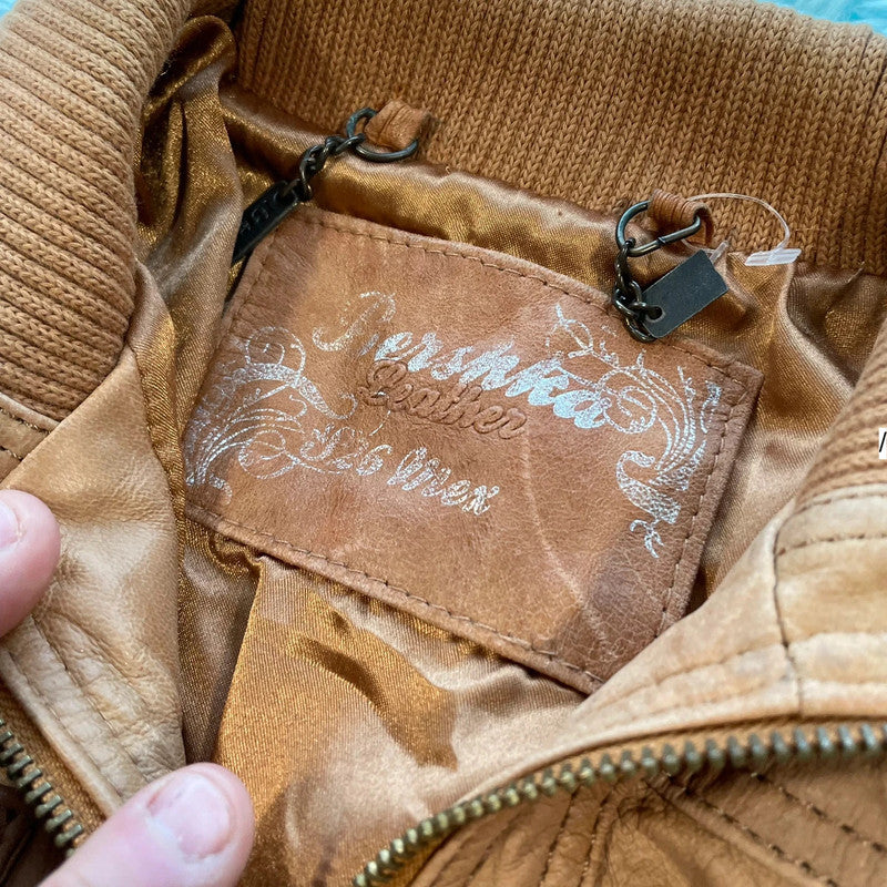 Vintage Brown Fitted Leather Jacket - Small, brand: Bershka, condition: Very good, size: 4 / S