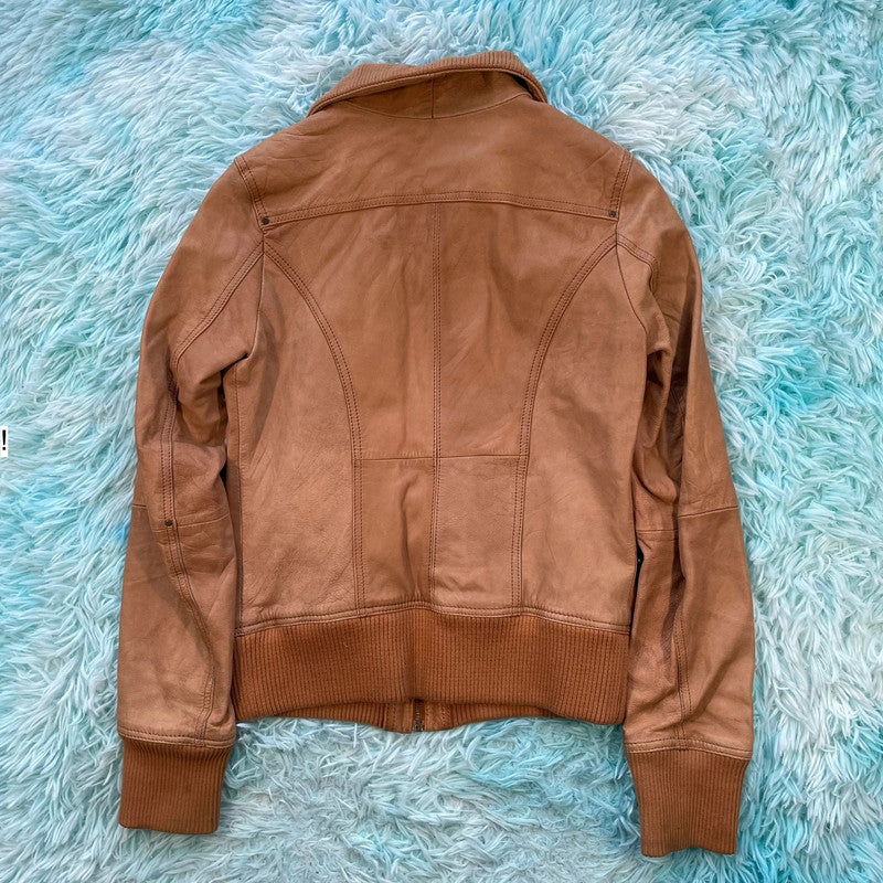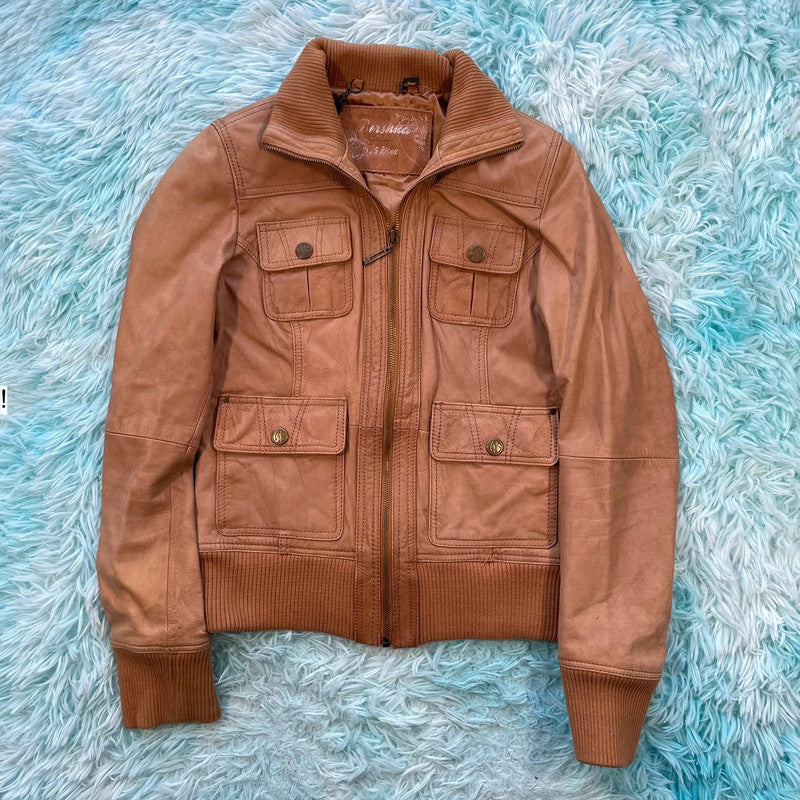 Vintage Brown Fitted Leather Jacket - Small, brand: Bershka, condition: Very good, size: 4 / S