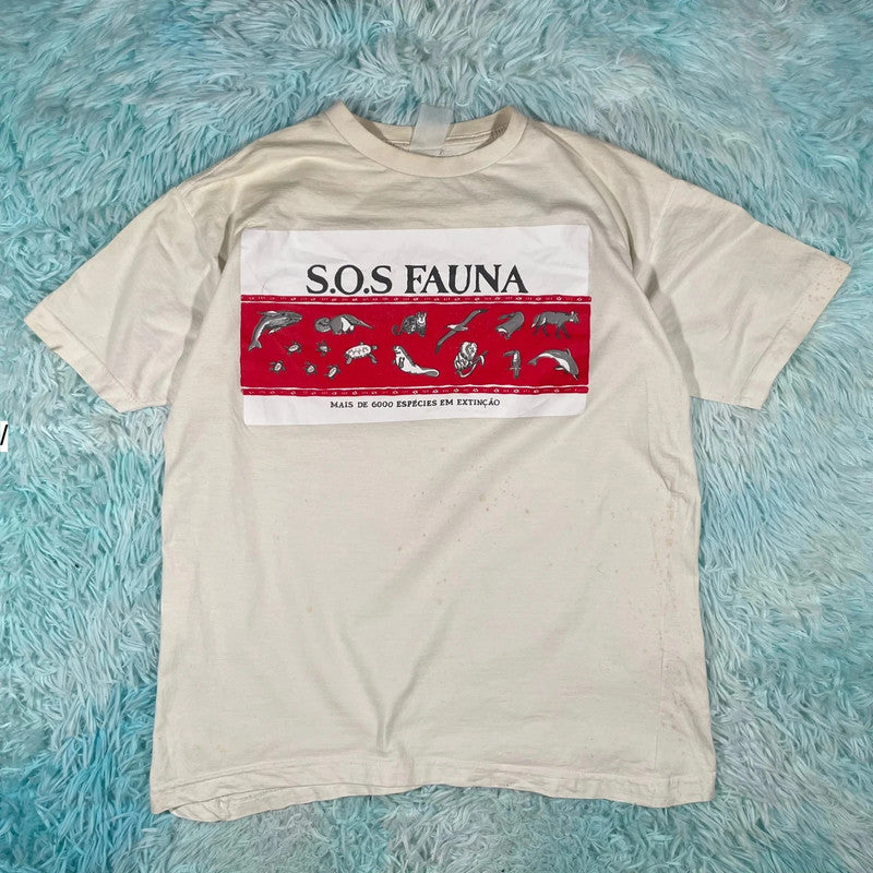 Vintage Cream Animal Print T Shirt - Small, brand: NO LABEL, condition: Satisfactory, size: S