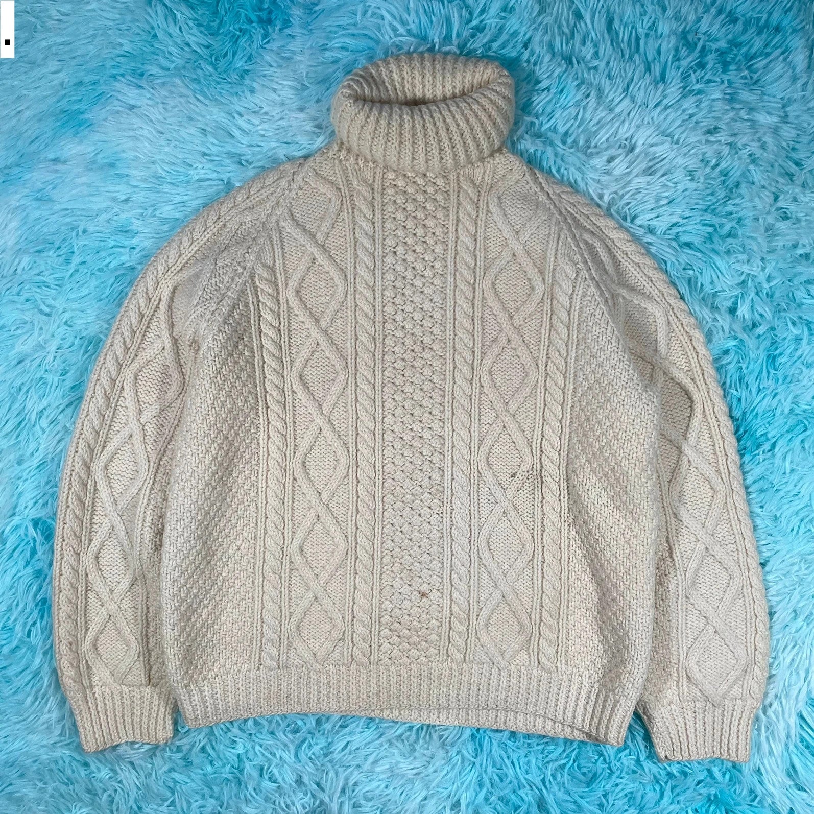 Vintage Cream Turtleneck Arran Knit Jumper - Small