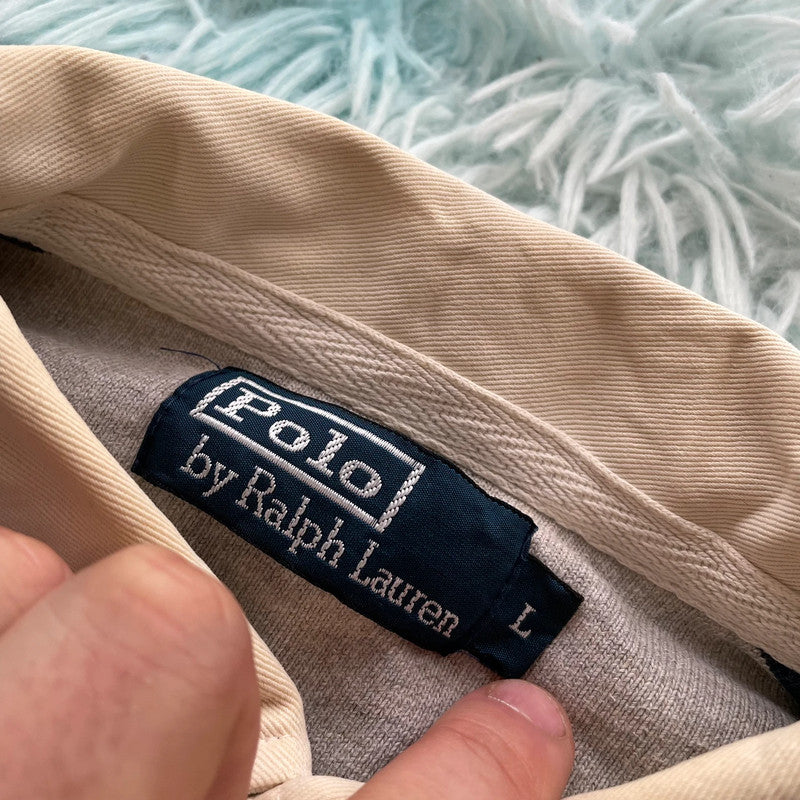 Vintage Grey & Navy Polo Ralph Lauren Rugby Shirt - Large, brand: Ralph Lauren, condition: Good, size: L