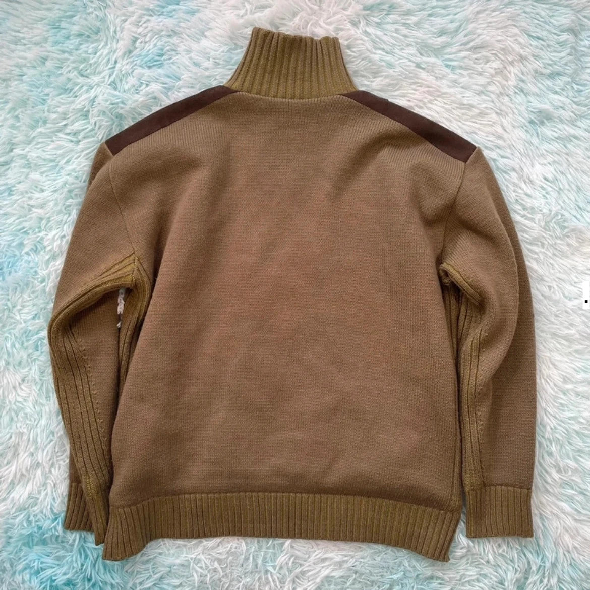 Vintage Khaki Le Chameau 1/4 Zip Knitted Jumper - Large