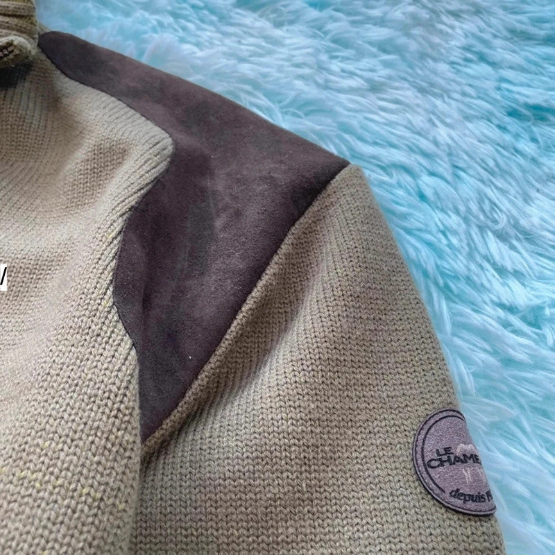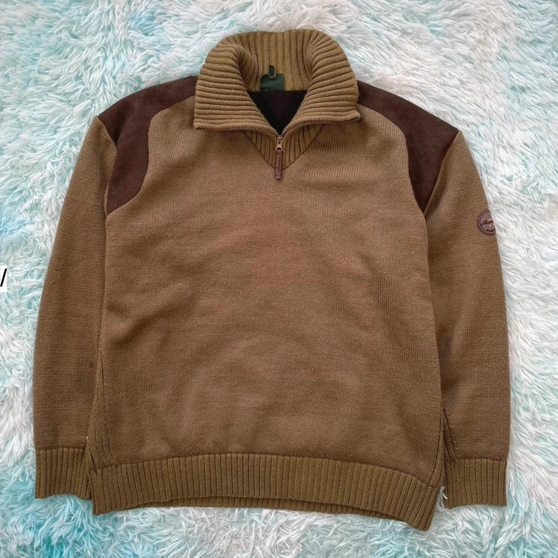 Vintage Khaki Le Chameau 1/4 Zip Knitted Jumper - Large, brand: Le Chameau, condition: Good, size: L