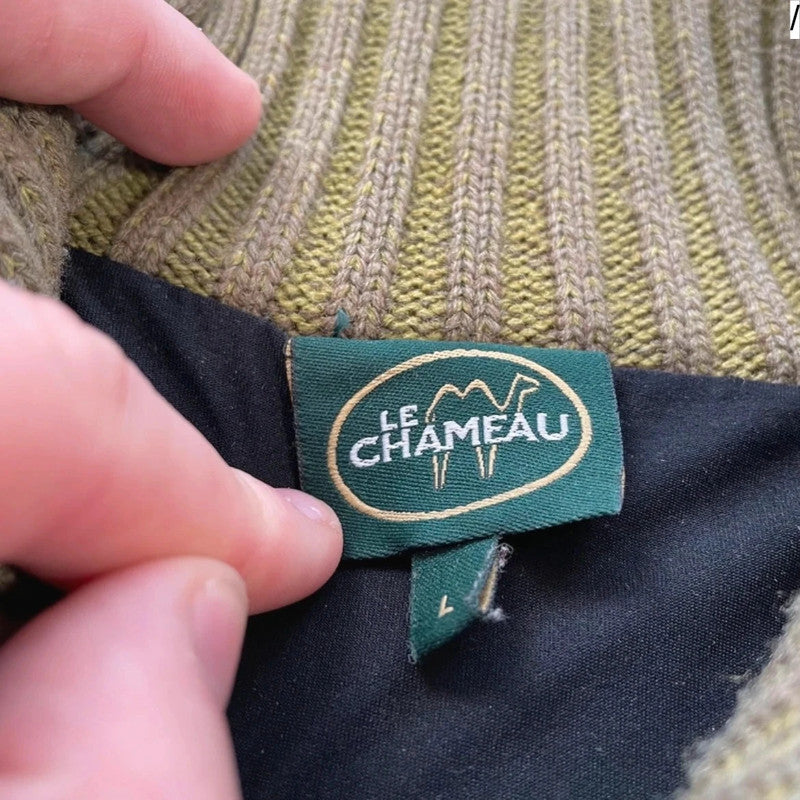 Vintage Khaki Le Chameau 1/4 Zip Knitted Jumper - Large, brand: Le Chameau, condition: Good, size: L