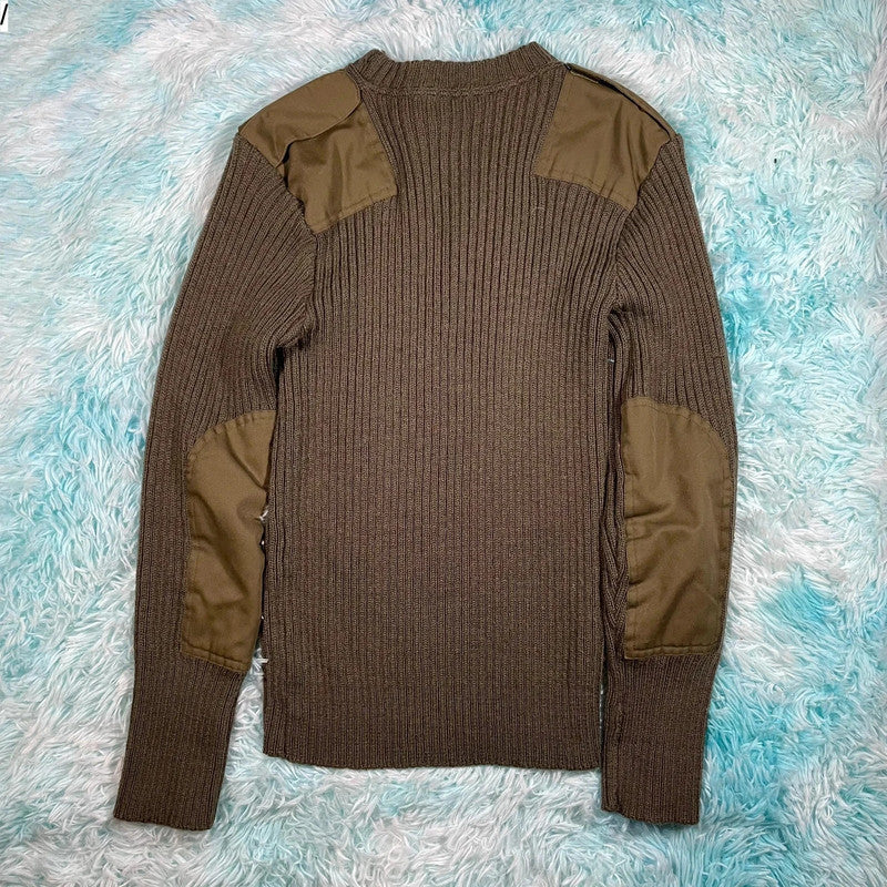 Vintage Khaki Military Army Knitted Jumper - Small