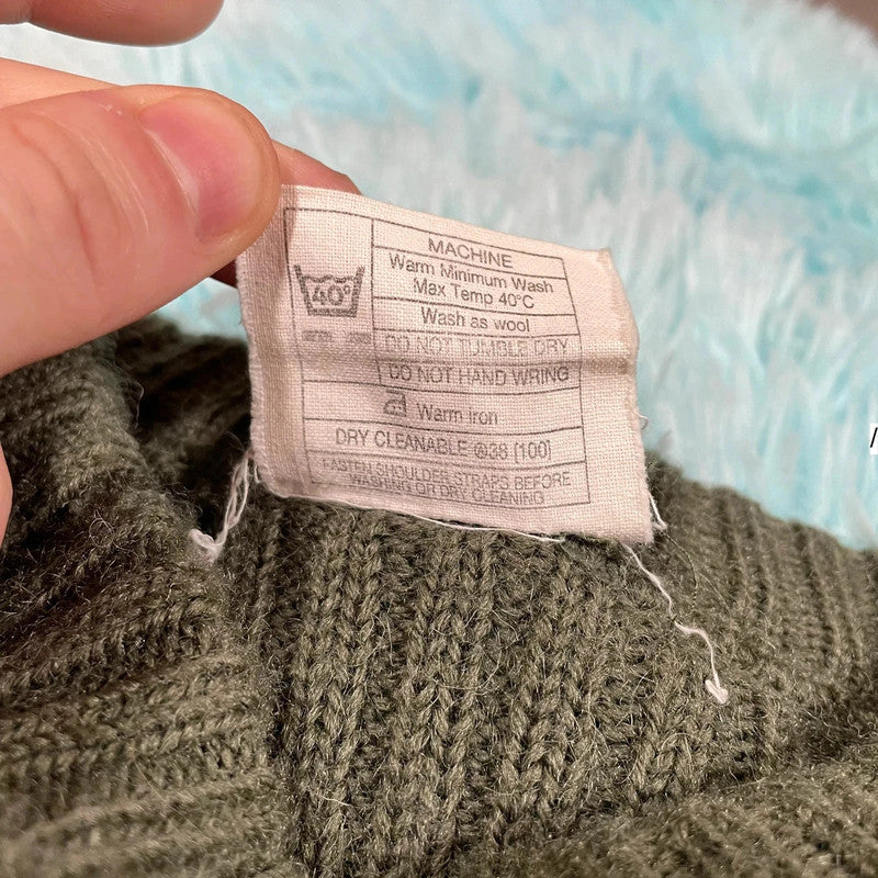 Vintage Khaki Military Army Knitted Jumper - Small