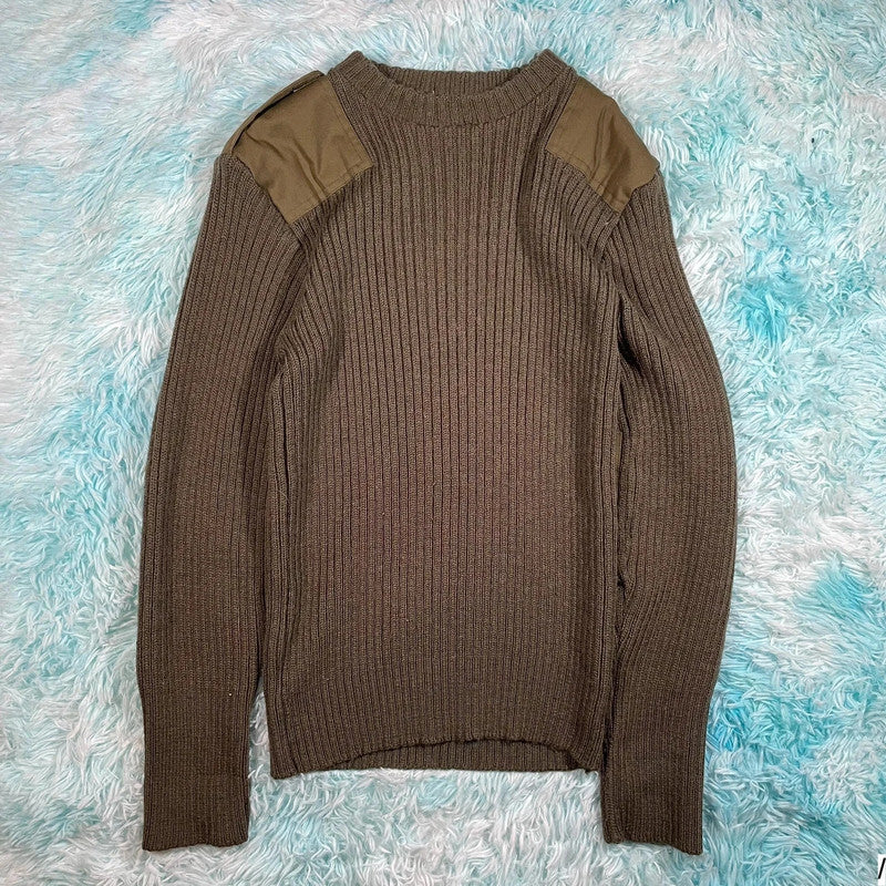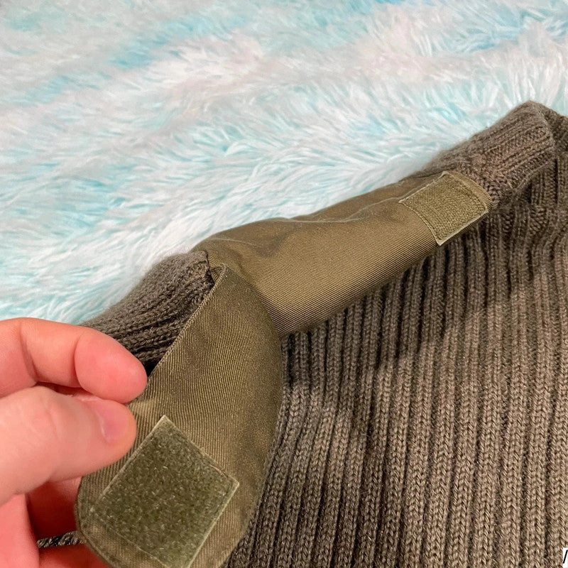 Vintage Khaki Military Army Knitted Jumper - Small