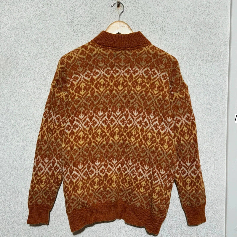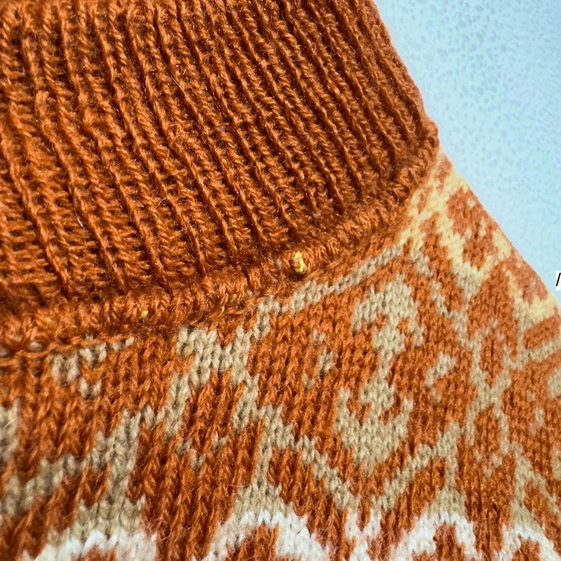Vintage Orange Funky Patterned Knitted Jumper - Small