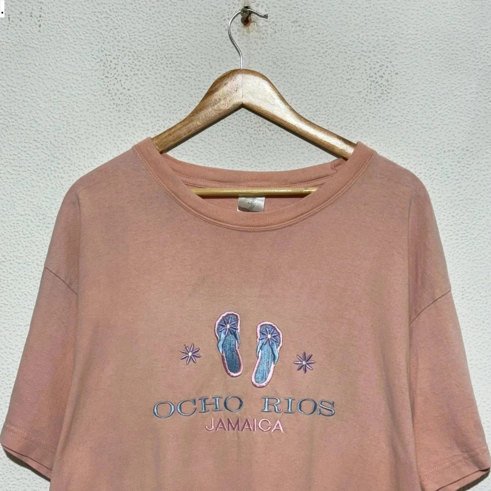 Vintage Pink Embroidered Jamaica Sandals T Shirt - XXL