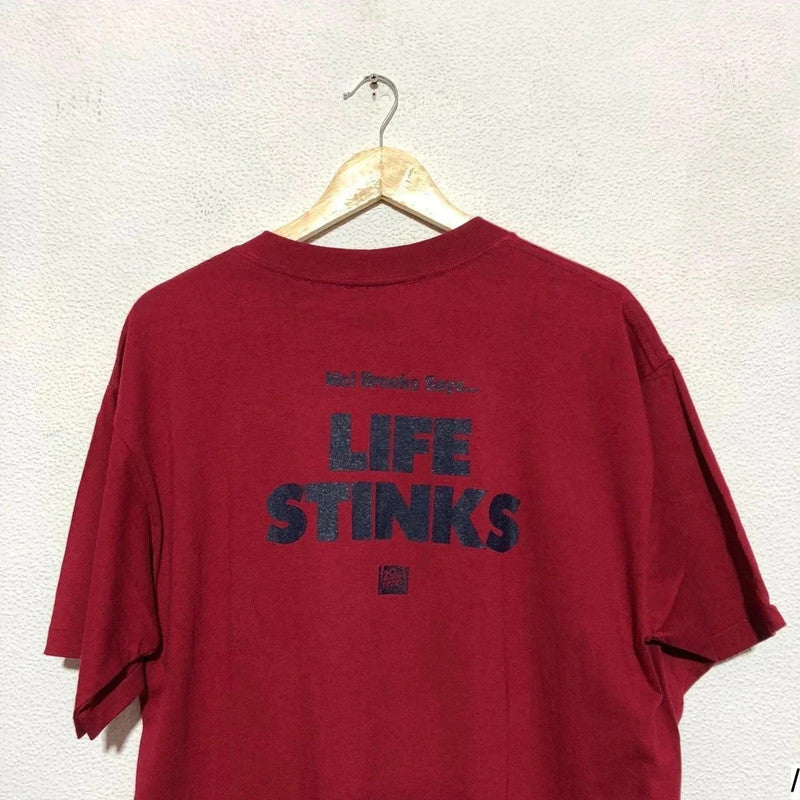 Vintage Red Life Stinks Mel Brooks Movie Promo T Shirt Graphic Print - XL