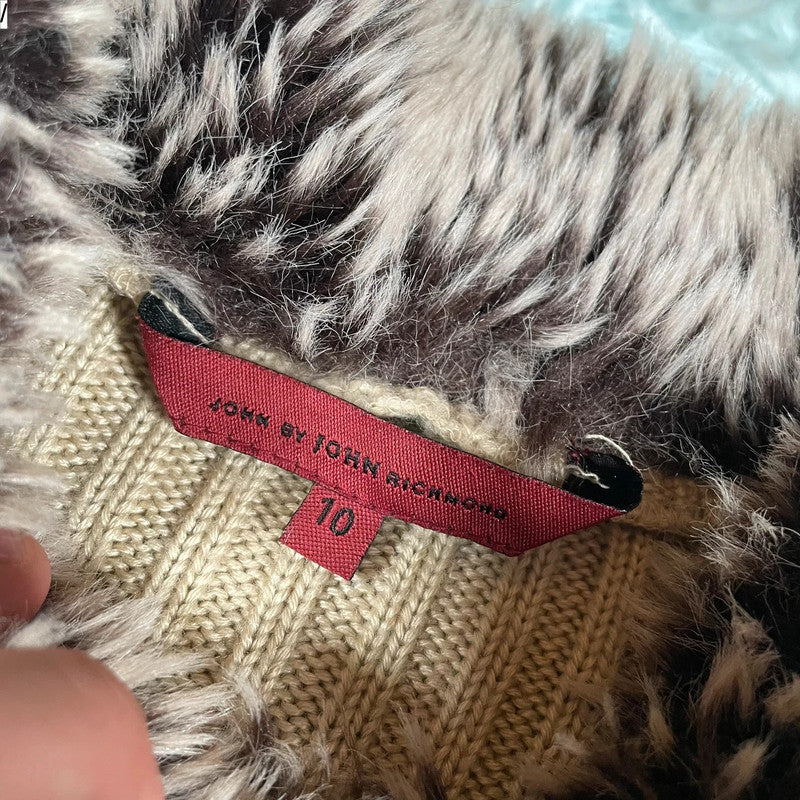 Vintage Y2K Beige Rocha Suede Fur Leather Jacket - Size 10, brand: Rocha John Rocha, condition: Very good, size: 6 / S