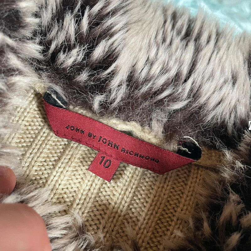 Vintage Y2K Beige Rocha Suede Fur Leather Jacket - Size 10, brand: Rocha John Rocha, condition: Very good, size: 6 / S