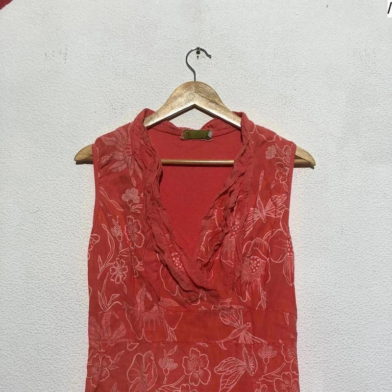 Vintage Y2K peach Floral Summer Dress made in Italy Low Cut - Medium, brand: other, condition: Very good, size: 6 / S