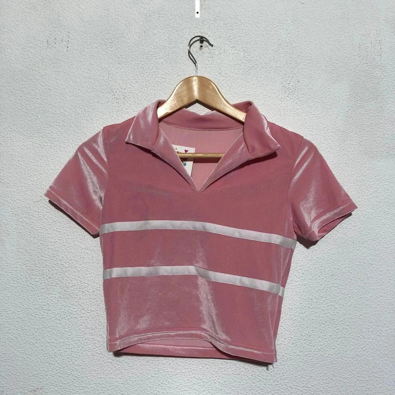 Vintage Y2K Pink Velour Collard Crop Top - Small