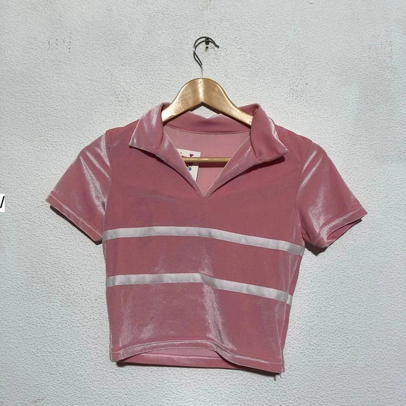 Vintage Y2K Pink Velour Collard Crop Top - Small, brand: Unbranded, condition: Very good, size: 4 / S