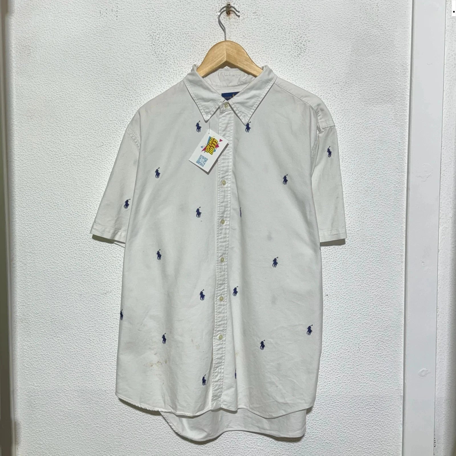 White Polo Ralph Lauren Shirt All Over Pony - Large